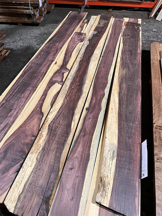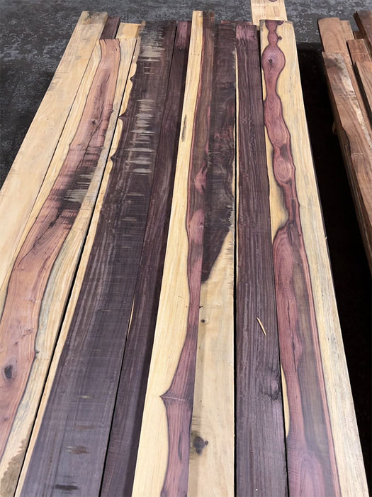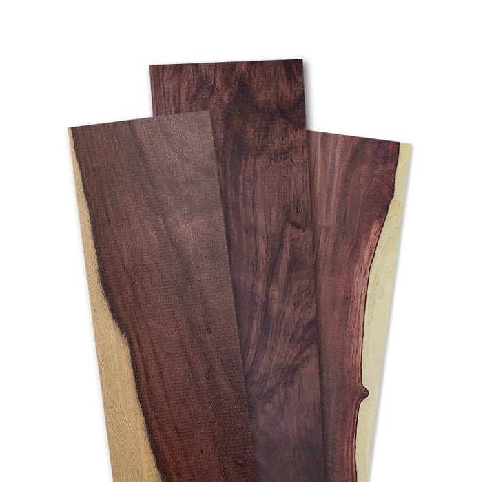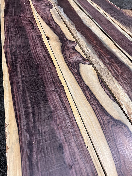 These are beautiful and unique pieces! The heartwood starts off a brownish purple but oxidizes to an almost black. This is contrasted nicely with creamy white sapwood. Often used as substitute for Ebony on account of just how dark the wood is - but it is not a real ebony!