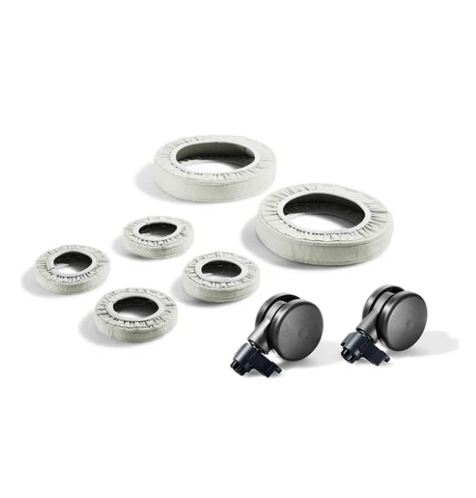 In order to protect delicate floor coverings against scratches, the wheels of your CT Dust Extractor can be upfitted with wheel covers. They are abrasion-free, made from robustmaterial and are washable. You can quickly put them on and take them off again. The set contains six wheel covers and two front wheels so that you also equip your CT 26 E or CT 36 E manufactured up to 2025 with wheel covers.