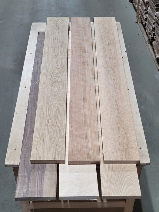 This pack will give a sampling of 6 of Ontario's most popular hardwood species found in our forests. You can't go wrong with these types of hardwood lumber; Ash, Cherry, Maple, Red Oak, White Oak, and Black Walnut!